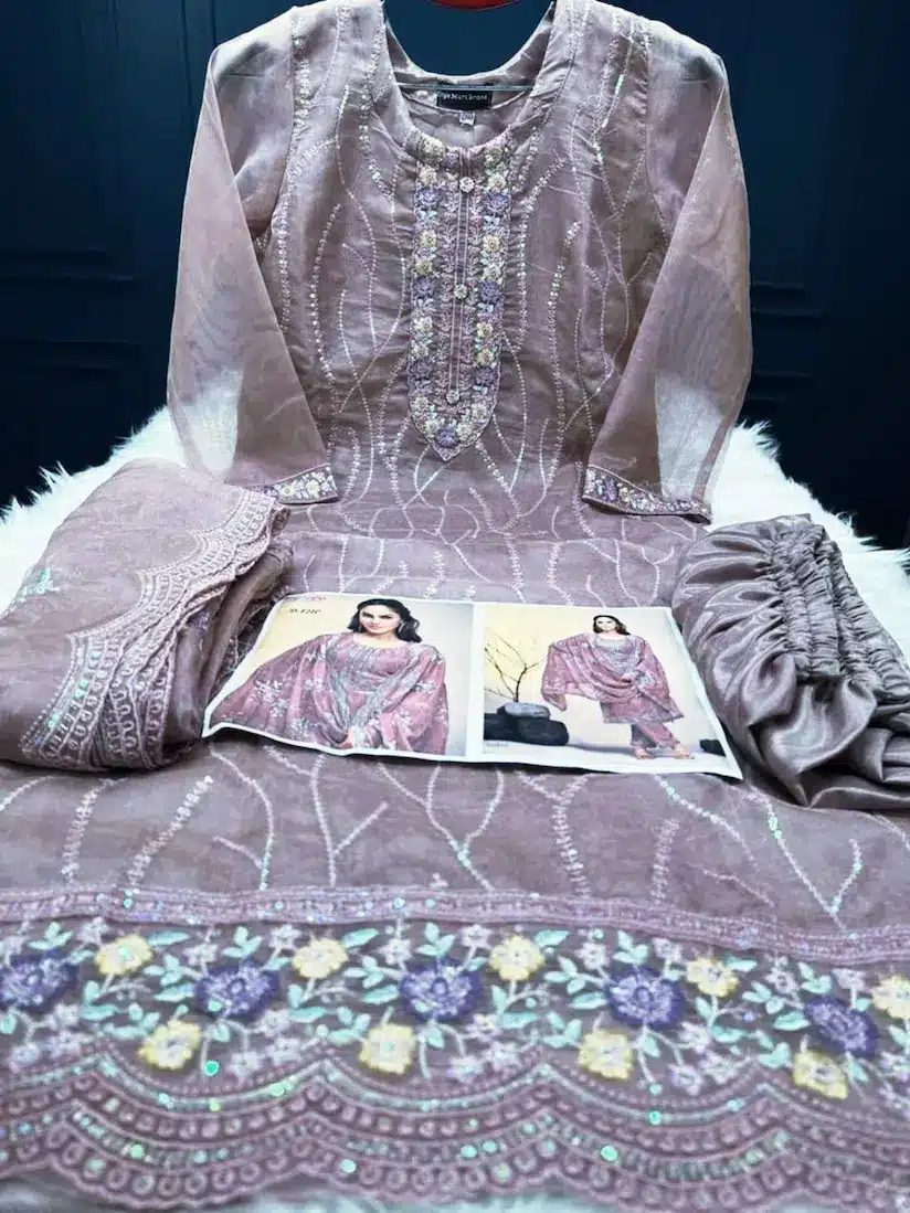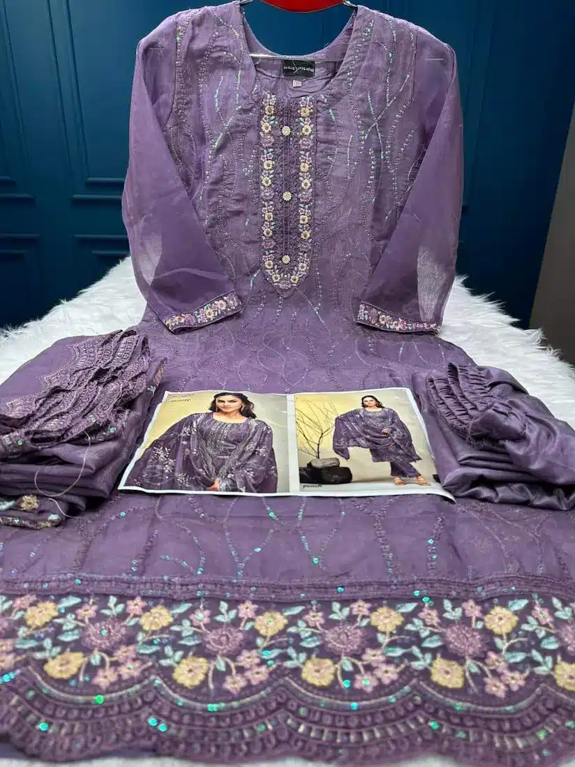 ওড়না কাটওয়ার্ক করা সিকোয়েন্স এমব্রয়ডারি কাজ পাঁচ হাত